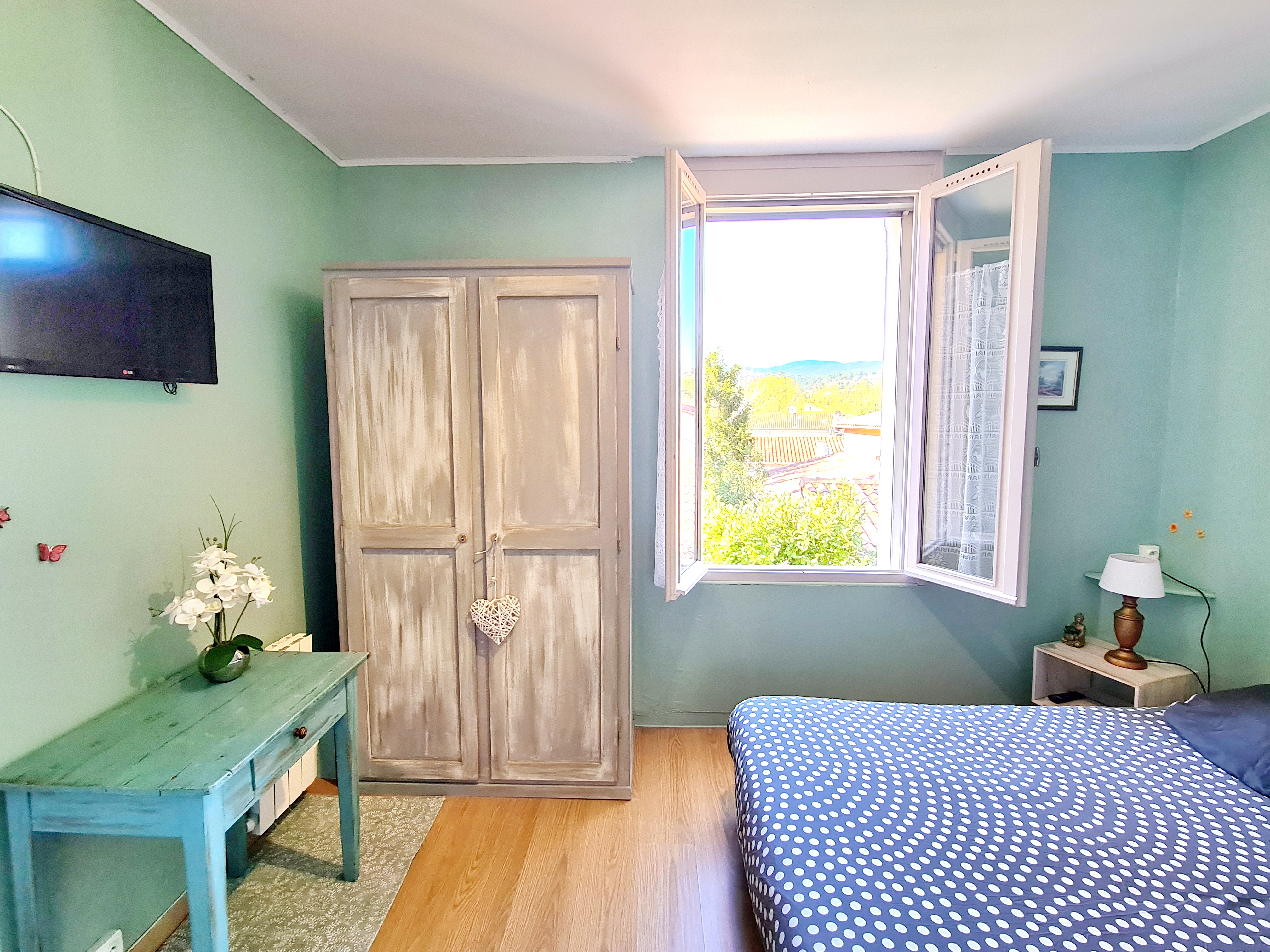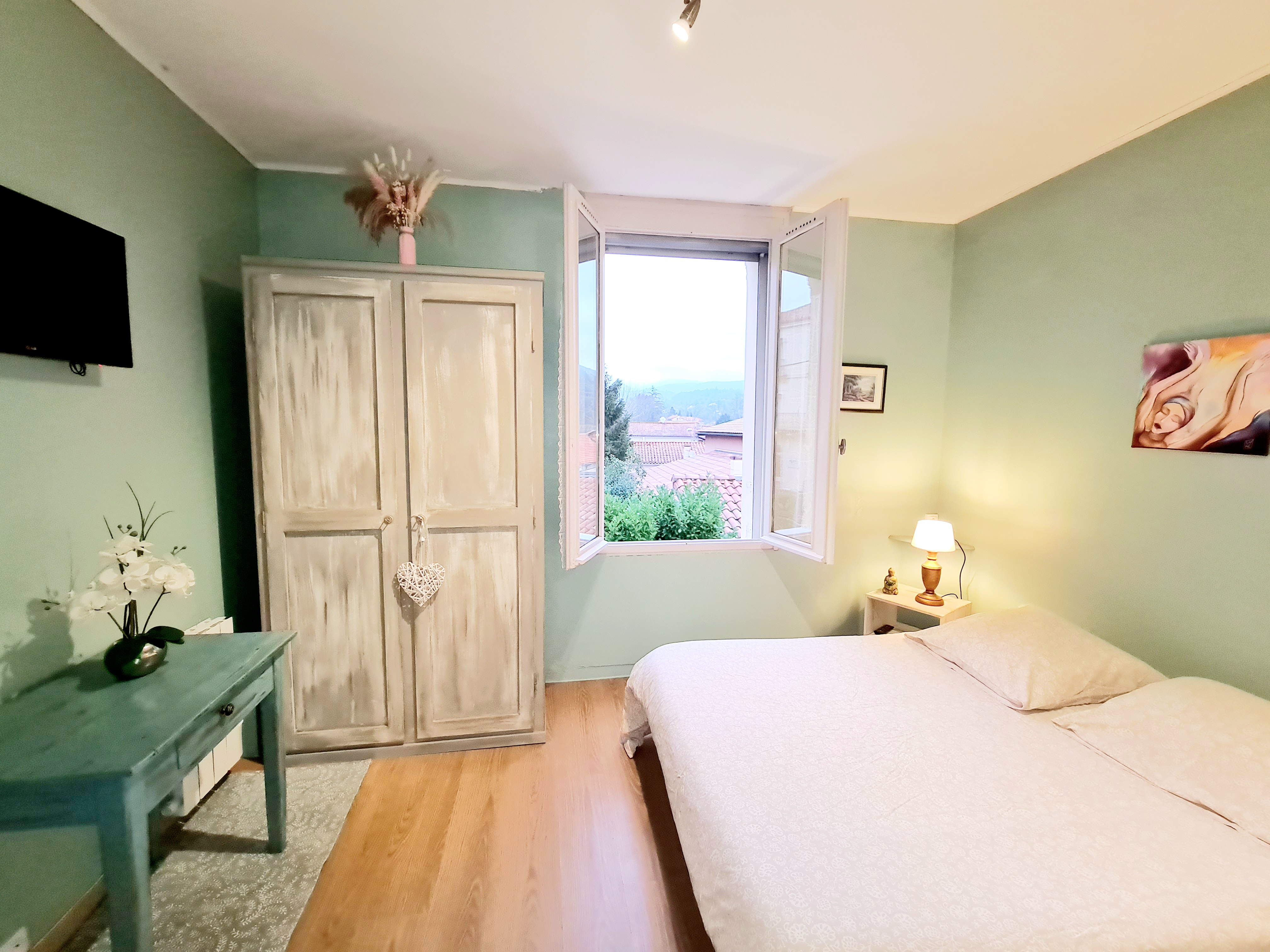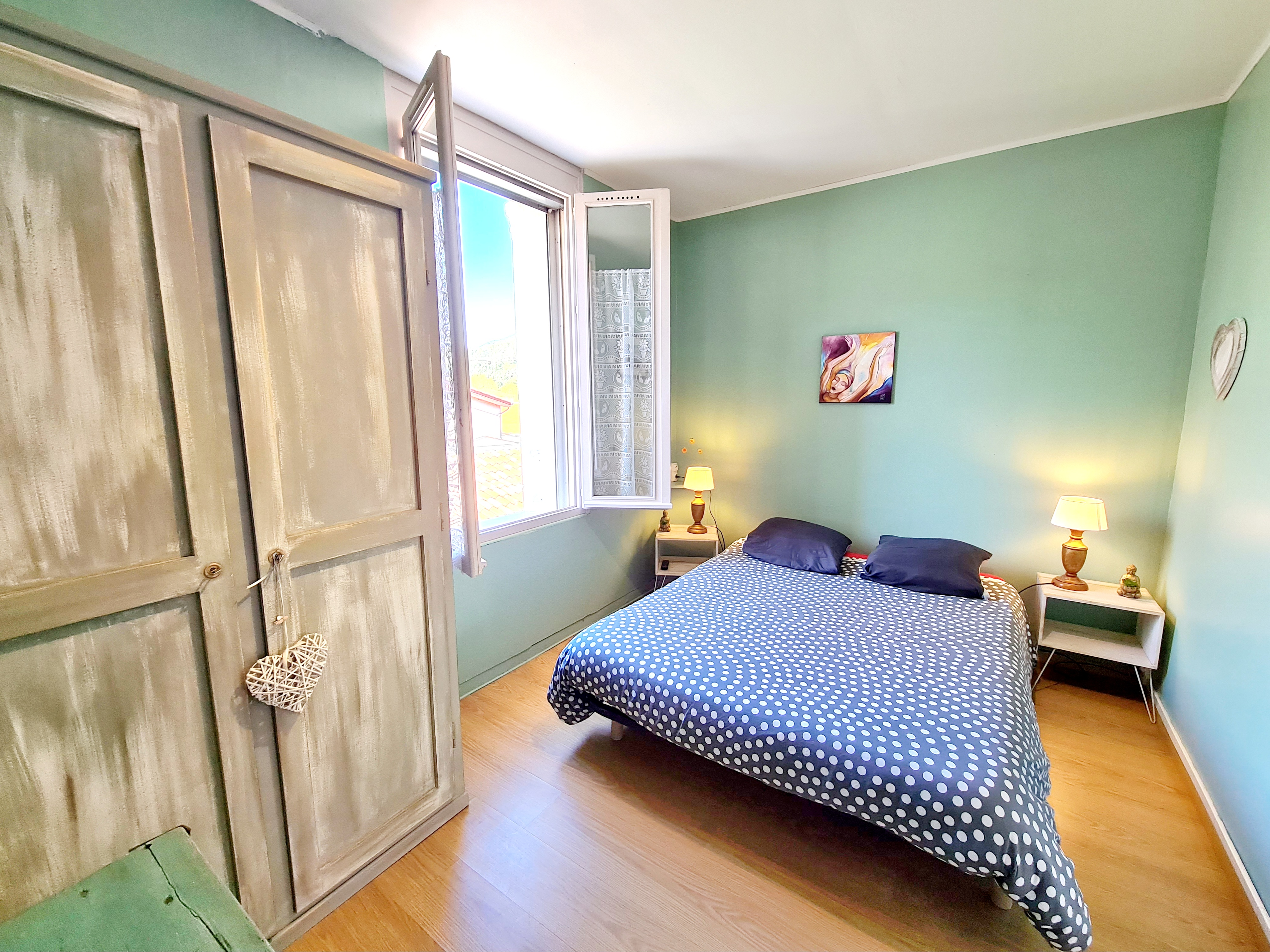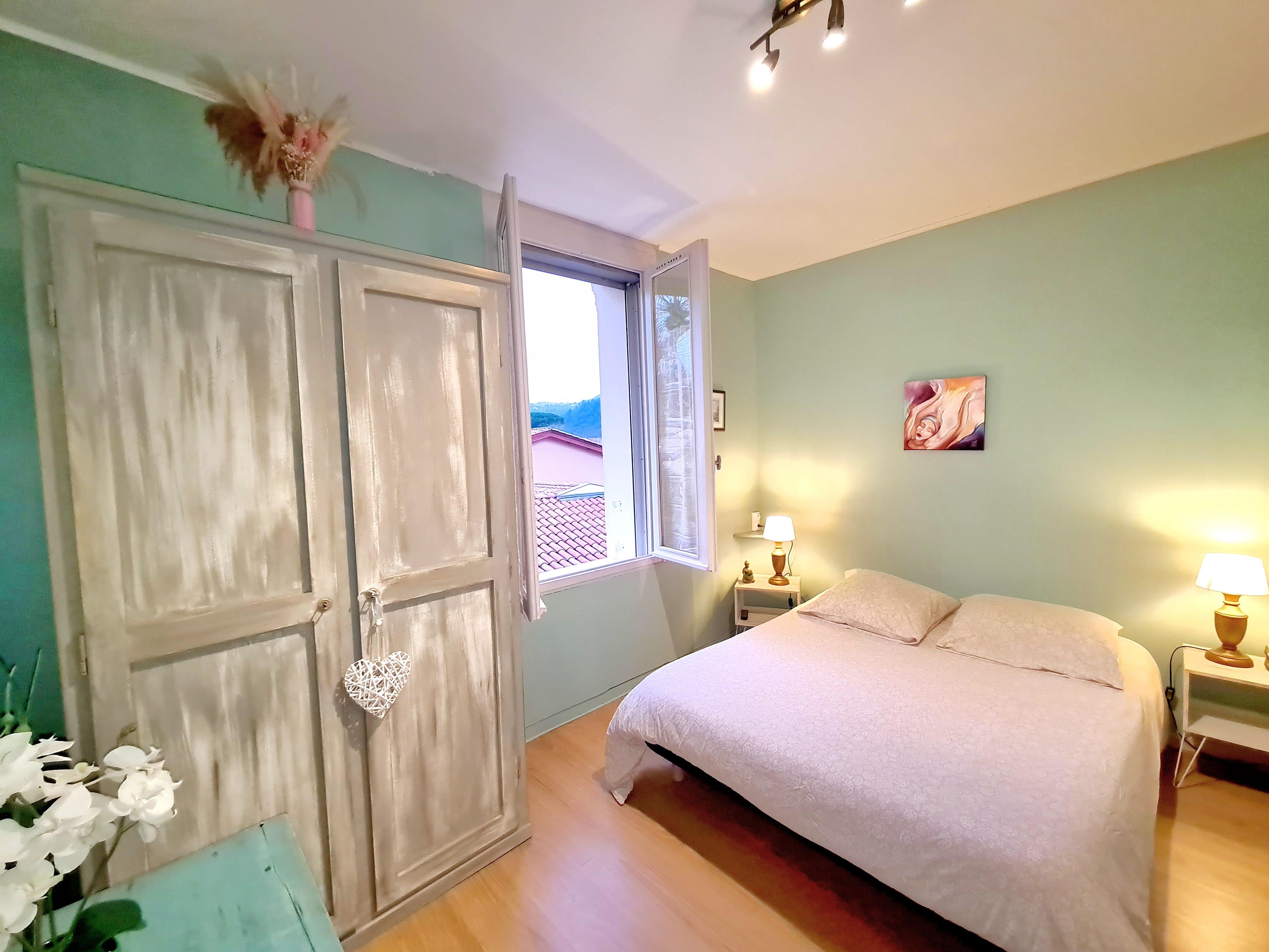 La chambre indépendante est équipée d’un lit double en 140 cm, idéal pour un séjour confortable.